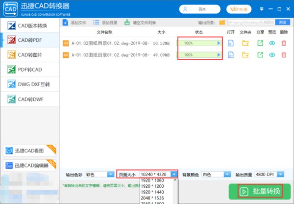 步骤四:最后选择完成以后,点击右下角的“批量转肢茄枯换”按钮,在历洞状态栏中看到100后即表示文件转换完成。