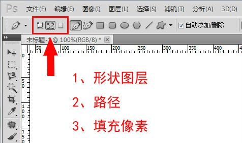在photoshop中,根据钢笔工具的属性,填充路径的方法有三种,如下图: