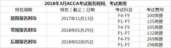 2018年3月ACCA考试报名时间、考试费用(越早报名越便宜):