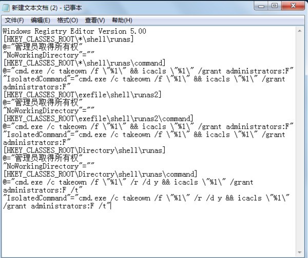 @="cmd.exe /c takeown /f "%1" /r /d y && icacls "%1" /grant administrators:F /t"