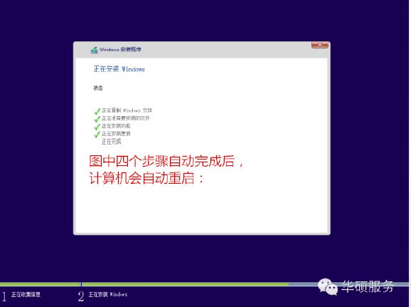 Windows将自动重启,这个时候可以将U盘拔掉