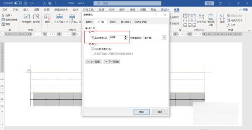 弹出窗口,修改表格的行高和列宽为20磅。