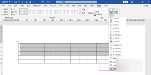 选中最上方的三行,点击菜单栏上“表设计-边框”,下拉选择“边框和底纹”。
