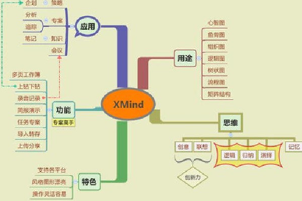 XMind是一个由香港XMind公司开发的脑力激荡法和心智图的软件工具,其主要用途为帮助用户捕捉想法,组织各类报表。它支妈落汽蒸创持心智图、石川图(又称因果图或鱼骨图)、树形结构图、组织结构图和电子表格。亦可以用来做知识管知悉袭理,会议记录,任务管理和尽管去做。XMind Pro 可以汇出Word、PowerPointPDF、 和 MindManager等文件。