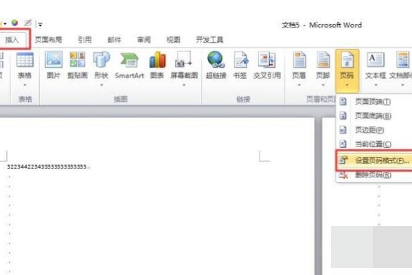 4、之后我们点击插入,然后点击设置页码格式;