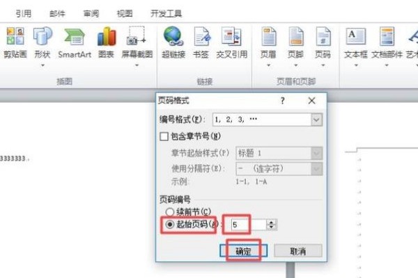 5、弹出的界面,我们点击起始页码,然后根据我们的需求,选择某一页为起始页码,之后点击确定就可以了。