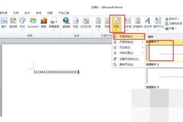 2、之后我们点击插入,然后点击页码的下拉箭头,弹出的界面,我们点击页面顶端,然后选择第一个;