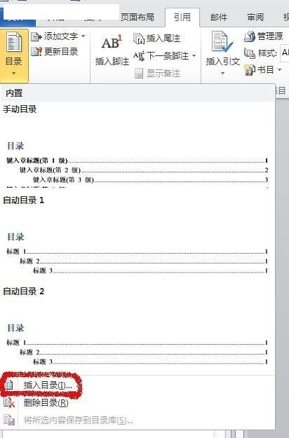 如果没有喜欢的样式,可以点击“插入目录”进行设置。