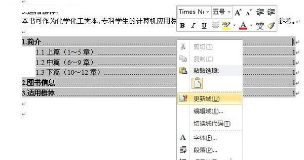 8.更新目录时,只需选中目录,鼠标右键弹出菜单,点击“更新域”。