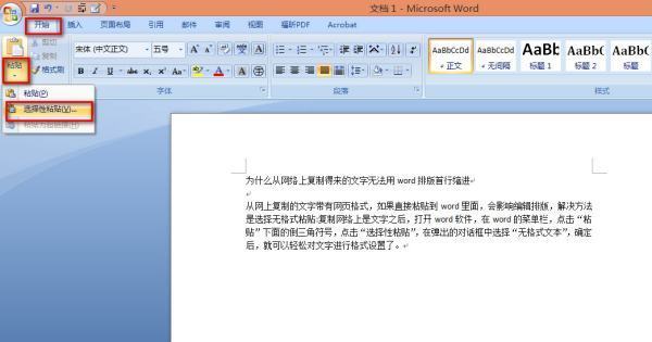 为什么从网络上复制得来的文字没法用word杆排版首行缩进