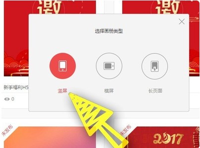 4、接下来,页面会提示选择画册的类型,可以选择竖屏或者横屏或者长页面,这里选择一个竖屏就可以了,如下图所示。