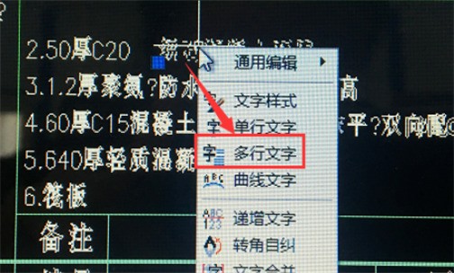 3、找到要提取的文本,单击鼠标右键,将显示一个小工具栏。单击鼠标左键,选择“多行文字”,弹出“多行文字”的操作界面。