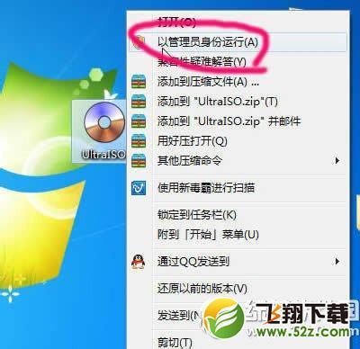 强普犯2、Windows7及以上系统要选择“以管理员身份运行”UltraISO软碟通软件。
