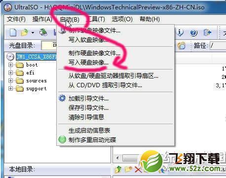 5、点击菜单,“启动”->“写入硬盘映像..”。