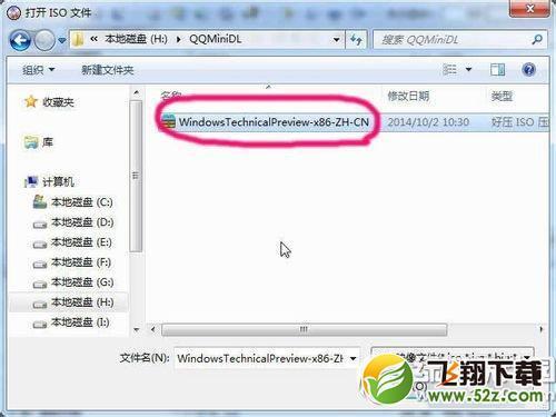 4、选择下载回来的win10系统ISO文件。