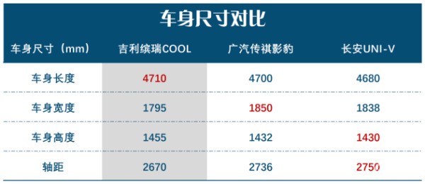 横向来看,我们上个部分将缤瑞COOL和影豹、UNI-V等车型的参数也进行了简要对比,虽然动力处于同一水平,但空间方面劣势会更明显。