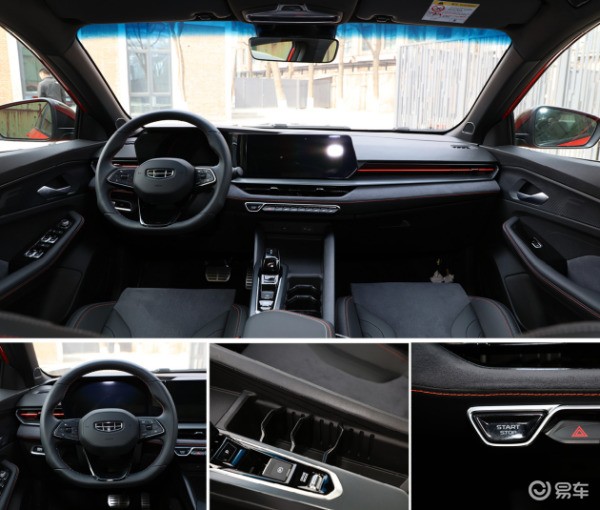 内饰部分,中控台的造型其实大家比较熟悉了。无论是星瑞还是帝豪L都使用的同款造型,不过缤瑞COOL没有沿用前两者的悬浮式中控屏幕,而是采用了10.25英寸+12.3英寸的双联屏。系统方面实拍车型无法进入系统,但据官图来看采用的吉利最新的银河OS生态系统。