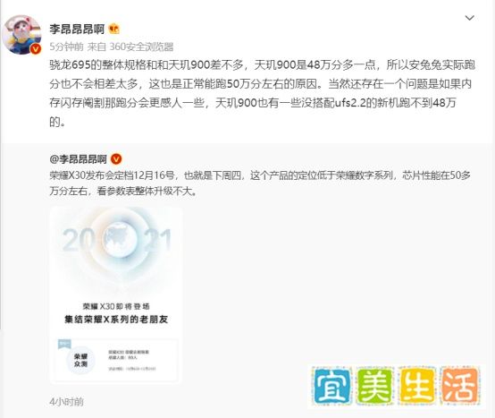发布会信息:知名数码博主@李昂昂昂啊 透露,荣耀X30新品手机发布会定档12月16日,日期为下周星期四。荣耀终端有限公司中国区CMO江海荣也在微博中表示,荣耀X系列8年诚意之作——荣耀X30即将在2021年12月16日与大家见面。