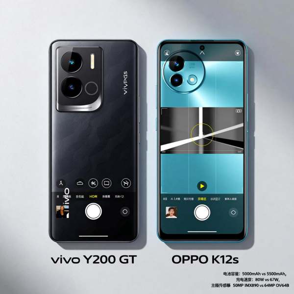 Vivo Y200 GT和OPPO K12s都是中端机型,各有侧重。以下是详细对比,供你参考: