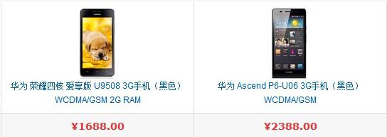 如P6【2388元】和荣耀四核爱享版【1688元】