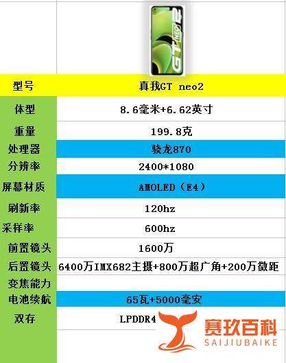 核心性能:骁龙870稳定输出,游戏体验有保障处理器:搭载高通骁龙870,安兔兔跑分约72万,性能接近骁龙888(80万跑分),但功耗控制更优,避免发热降频问题,适合长时间游戏或多任务处理。对比同价位:在2000元以下价位段,骁龙870性能仍属第一梯队,优于天玑1200等中端芯片,且软件优化更成熟。续航与充电:5000mAh大电池+65W快充,重度使用无忧电池容量:5000mAh大电池在同价位罕见,实测连续游戏可支撑5-6小时,日常使用一天一充无压力。充电速度:65W智慧闪充35分钟即可充满,碎片化时间快速回血,缓解续航焦虑。对比优势:相比同价位普遍4500mAh电池+30W快充的组合,真我GT Neo2的续航组合优势明显。屏幕素质:E4材质硬直屏,触控与护眼兼顾材质与刷新率:采用三星E4发光材质AMOLED硬直屏,支持120Hz四档自动变速刷新率,兼顾流畅度与功耗。触控采样率:600Hz触控采样率(部分场景下),操作跟手性优于红米K40的360Hz,适合FPS类游戏。护眼功能:支持DC调光,低亮度下减少频闪,对长时间使用手机的用户更友好。不足:硬屏通病导致下巴较宽,屏占比略低,但屏幕整体素质仍属同价位顶尖。相机配置:日常够用,但无突出优势镜头参数:后置三摄(6400万主摄+800万超广角+200万微距),主摄为三星GW1传感器,成像清晰但缺乏防抖和算法优化。实际表现:白天光线充足时色彩还原准确,夜景高光压制一般;超广角镜头视角较广但边缘畸变明显;微距镜头实用性较低。对比同价位:相机表现中规中矩,与红米K40、iQOO Z5等机型处于同一水平,若注重拍照建议考虑真我GT大师探索版等机型。手感与外观:厚重机身+塑料边框,需权衡取舍重量与厚度:整机重199.8克,厚8.6mm,握持感偏厚重,但考虑到大电池容量,属于合理妥协。材质:塑料中框+玻璃后盖(部分配色),裸机使用需避免磕碰,建议搭配保护壳。设计风格:提供黑薄荷、影黑、苍蓝三种配色,后盖采用AG磨砂工艺,不易沾染指纹。适用人群与购买建议推荐购买: