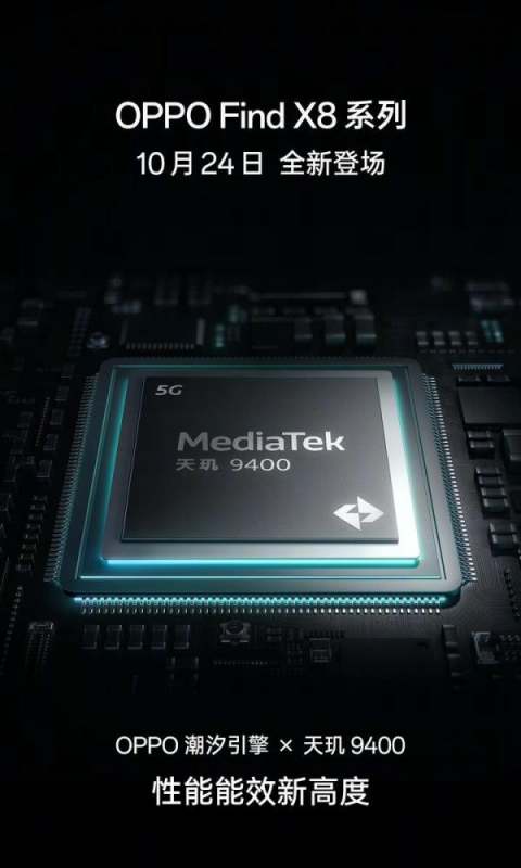 OPPO官方宣布OPPO Find X8系列手机将于10月24日发布,首批搭载联发科天玑9400处理器。