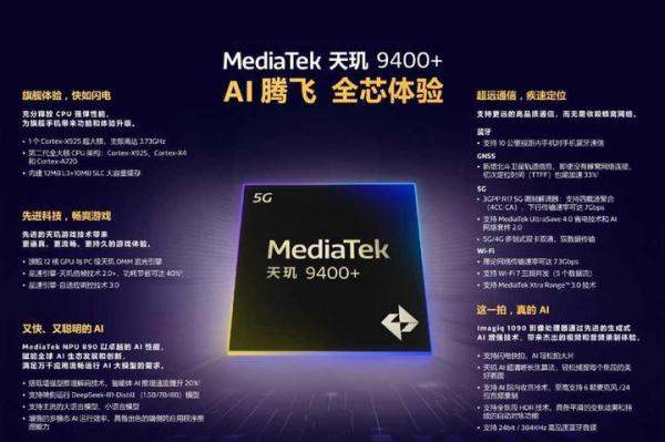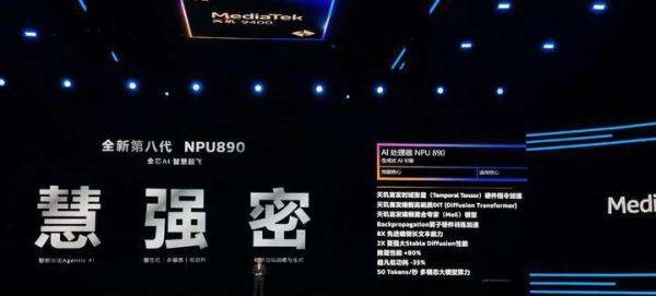 联发科天玑9400+是采用第二代全大核架构的旗舰5G智能体AI移动芯片,集成第八代AI处理器NPU 890,支持DeepSeek-R1推理模型关键技术,具备高性能、高能效及突破性AI能力。