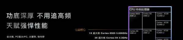 1颗3.63GHz Cortex-X925超大核:ARM最新旗舰核心,主频较前代提升,单核性能或突破行业纪录。