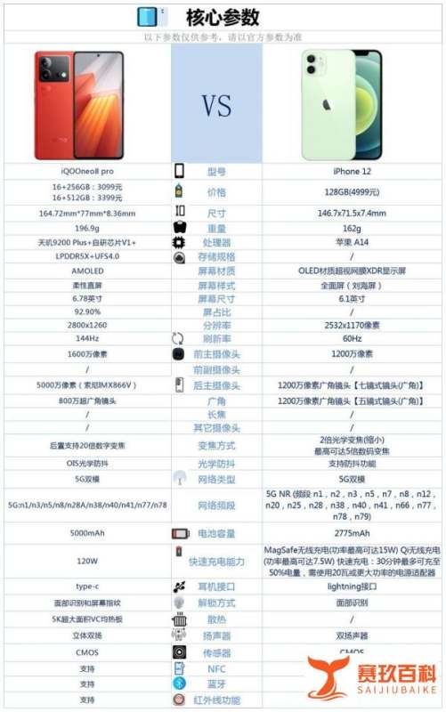 若追求性价比、高性能、高刷屏幕、长续航、快充、全面功能,推荐选择iQOOneo8pro;若更看重轻薄机身、iOS系统生态及品牌体验,则iPhone12更合适。以下是具体差异分析: