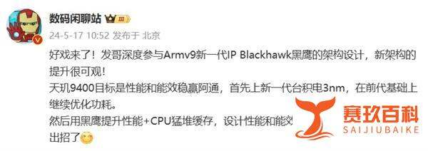 Blackhawk黑鹰架构:采用最新Armv9 IP,缓存容量显著增加,单核性能和多核协同效率提升。参考苹果M4(Armv9架构)在Geekbench6中多核跑分超14000分的表现,天玑9400的算力潜力值得期待。