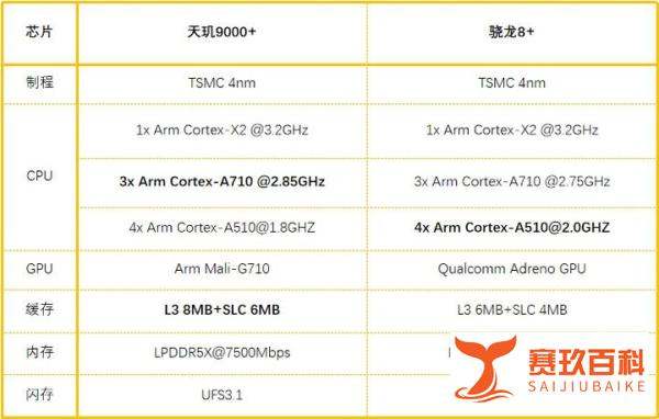 与骁龙8+对比:从规格对比来看,天玑9000+和骁龙8+的综合实力旗鼓相当,但天玑9000+ CPU性能更强,缓存容量更大,支持更高速率的内存扩展。在CPU性能这一关键指标上占据优势,使其在多任务处理、复杂运算等场景中表现更出色。