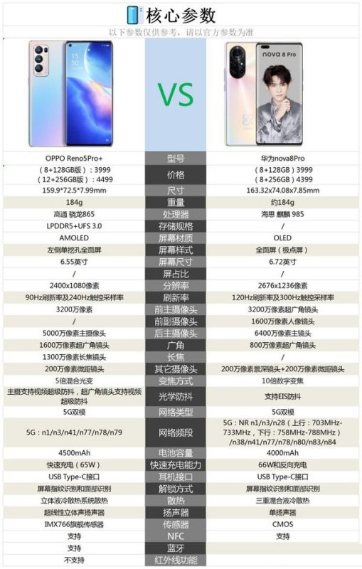 OPPO Reno 5 Pro和华为 Nova 8 Pro这两款手机各有所长之处。我们在购买手机的实际选择过程中,需要将自身需求以及两款手机的优点相结合,才能够做出最合理的选择。