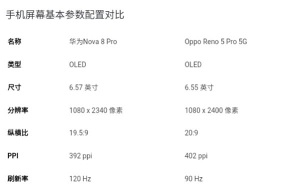 小结:就屏幕质量而言,华为nova8Pro这款手机的屏幕质量是优于OPPOreno5Pro+这款手机的。