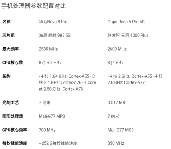 不管是从处理器的市场定位还是工艺架构来看,天玑1000+和麒麟985不是一个产品线上的处理器,总体来说,OPPO Reno5 Pro搭载的天玑1000+比华为nova 8 Pro的麒麟985强太多,天玑1000+的性能大幅度领先。
