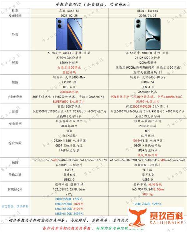 真我 Neo7 SE与REDMI Turbo4在天玑8400平台上的对比中各有优势,难以简单判定谁是绝对王者,需根据用户具体需求选择。以下是详细对比分析: