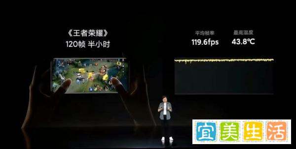 在《王者荣耀》120帧模式下,半小时平均帧率119.6帧,机身最高温度43.8℃,实现“满帧+清凉”的双重体验。