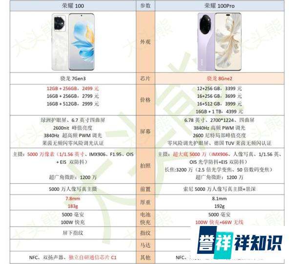 荣耀100与荣耀100 Pro参数配置详细对比及购买建议如下:
