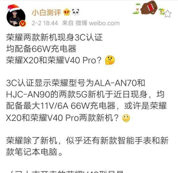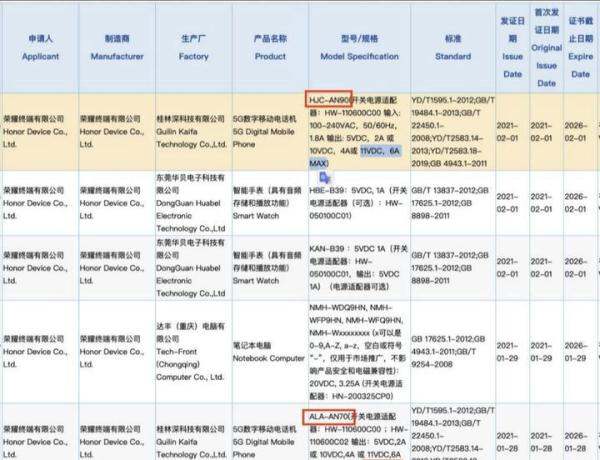 新机型号与认证:荣耀V40 Pro和X20的型号分别为ALA-AN70和HJC-AN90,这两款机型已经通过了3C认证,这意味着它们在充电等电气安全方面已经符合了相关标准。