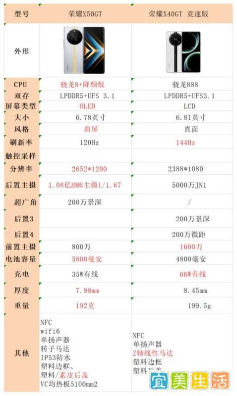 总结与建议优先选荣耀X50GT:若追求综合性能、屏幕、拍照、续航和手感,且不在意差价,荣耀X50GT无明显短板,性价比更高。选荣耀X40GT竞速版:若满足以下条件之一:极度讨厌曲面屏,坚持使用LCD屏;