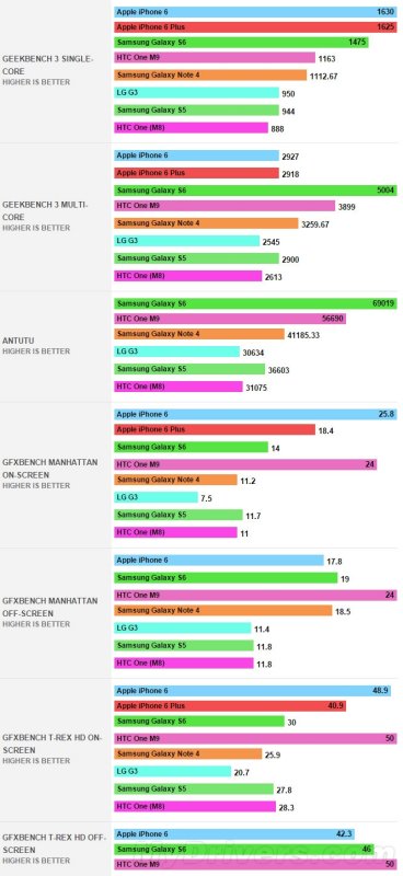 GPU性能骁龙810>A8>Exynos 5430>麒麟920