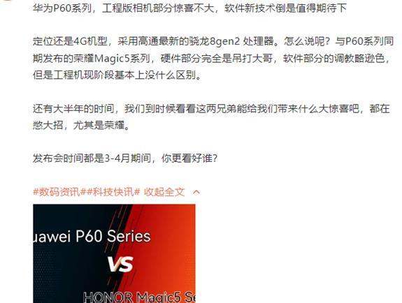 以上信息基于供应链爆料,实际配置可能因研发进度、供应链变动等因素调整。华为受制裁影响,部分功能(如5G网络支持)可能受限,需以官方发布为准。华为P60系列通过定制芯片、影像创新及设计升级,试图在高端市场巩固地位,其实际表现值得关注。