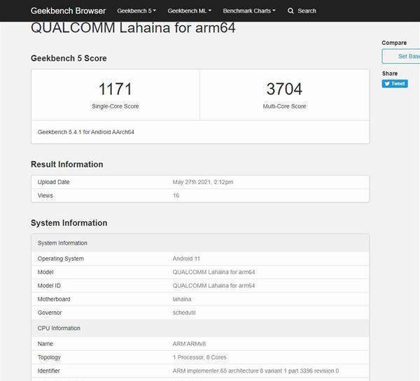 在GeekBench跑分平台上,这款疑似骁龙888 Plus的处理器展现出了与骁龙888相近的性能表现。具体来说,其单核跑分为1171分,多核跑分为3704分,相较于骁龙888的单核1138分和多核3603分,提升并不显著。然而,值得注意的是,这款处理器的CPU主频已经提升到了3.0GHz,这或许意味着在特定场景下,它能提供更强劲的性能输出。