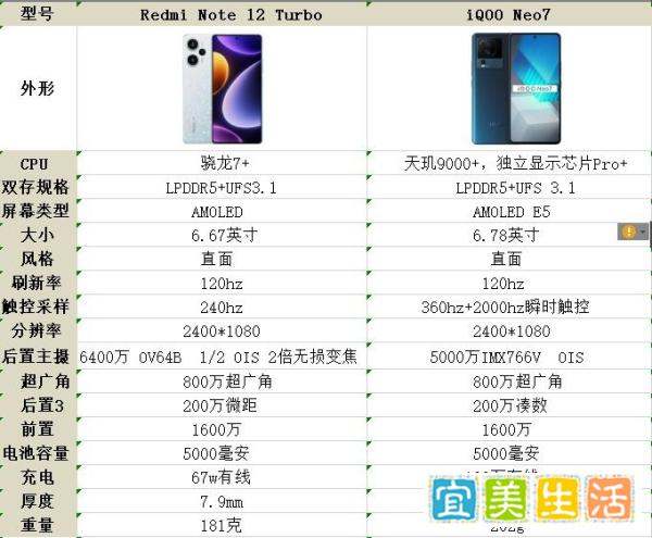 结论:红米Note 12 Turbo手感更轻薄,适合日常携带;iQOO Neo 7材质更高级,适合追求质感的用户。