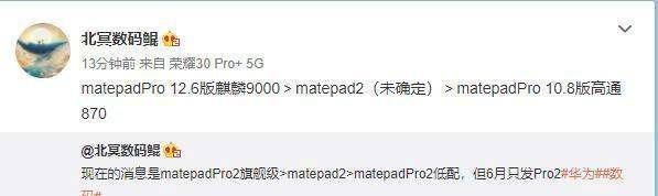 新一代华为MatePad Pro配置曝光:或将采用鸿蒙OS+骁龙870,命名或以屏幕大小为准