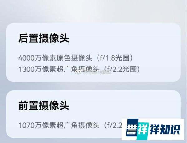 后置双摄:4000万像素主摄(f/1.8光圈)+1300万像素超广角镜头(f/2.2光圈),支持多场景拍摄需求。