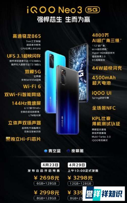 IQOO Neo3是目前最便宜的骁龙865手机,起售价2698元,配备144Hz高刷新率屏幕和双扬声器。以下是详细介绍: