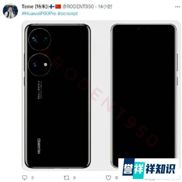 华为P60系列渲染图显示其采用灵动岛+双圆环设计,影像系统将迎来重大升级,预计明年3-4月发布。
