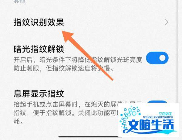选择指纹效果配置在【指纹、人脸与密码】页面中,点击【指纹识别效果】选项。该功能允许用户自定义指纹解锁时的动画样式,包括光效、颜色及动态效果等。