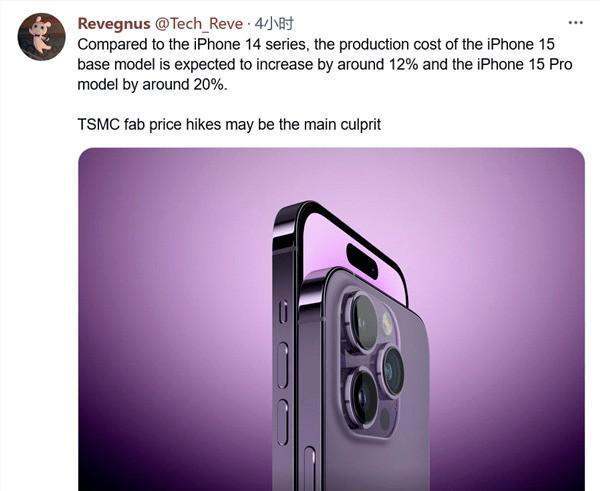 生产成本增加推动售价上涨海外知名博主透露,iPhone 15系列中标准版生产成本将增加12%,Pro版本成本增加达20%。成本上升直接导致售价水涨船高,其中Pro版本因升级幅度更大,成本增幅显著高于标准版。
