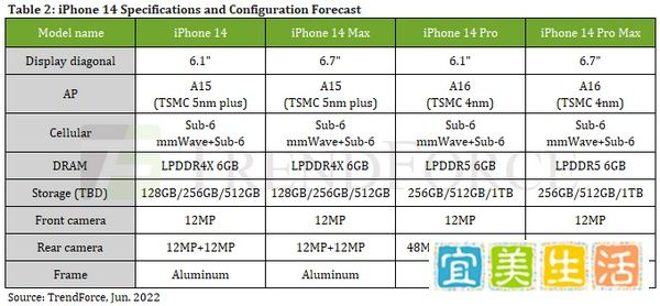 价格涨幅依据分析师郭明錤指出,iPhone14系列预计全面涨价约15%,核心驱动因素是Pro和Pro Max机型起步存储容量从128GB提升至256GB。存储芯片成本随容量增加显著上升,直接推高整机定价。此前集邦咨询在6月已预测此配置调整,此次分析师重申可能基于供应链验证信息,进一步强化了涨价逻辑。